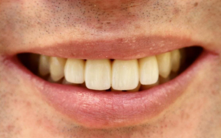 被せ物治療の際は、歯を1本ずつ丁寧に削って土台の形に整え、まずは1段階目の仮歯を装着しました。