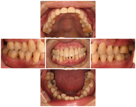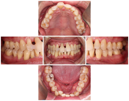 歯ぐきの検査やレントゲン撮影を行った結果、若くして歯を支える組織に炎症が起こる「若年性歯周病」が全体的に進行した状態と診断しました。