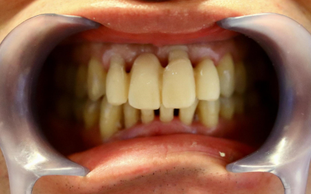 拝見したところ、上の前歯数本に出血と揺れが生じていました。