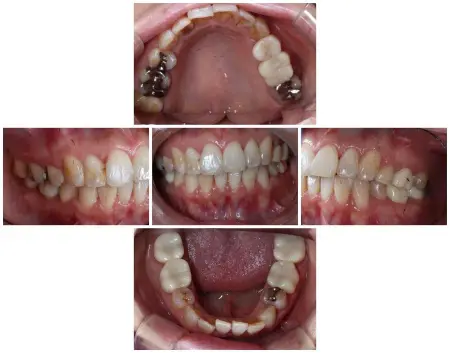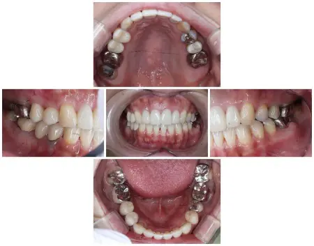 加えて、見た目の美しさと噛み合わせを改善するため、虫歯治療を施す歯に挟まれている右上の中切歯を含む計4本の前歯をジルコニアで修復することを提案したところ、治療に同意いただきました。