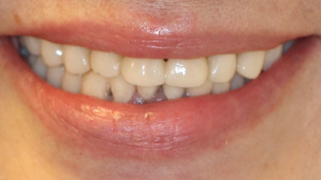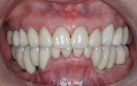 その後、治療期間や料金について患者様に再度ご提案しご了承いただいた上で、インプラントも含めた上下全ての歯を、自然な白さで適合もよい「ジルコニアセラミック」の被せ物に置き換えていきました。