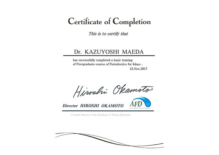 日本歯科大学を卒業。 『ウェルネスデンタルクリニック(当院)』に4年間勤務。 |